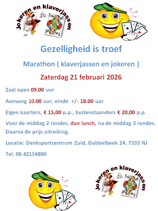 Op deze pagina vindt u aankondigingen van bijzondere activiteiten, zoals een klaverjasmarathon.